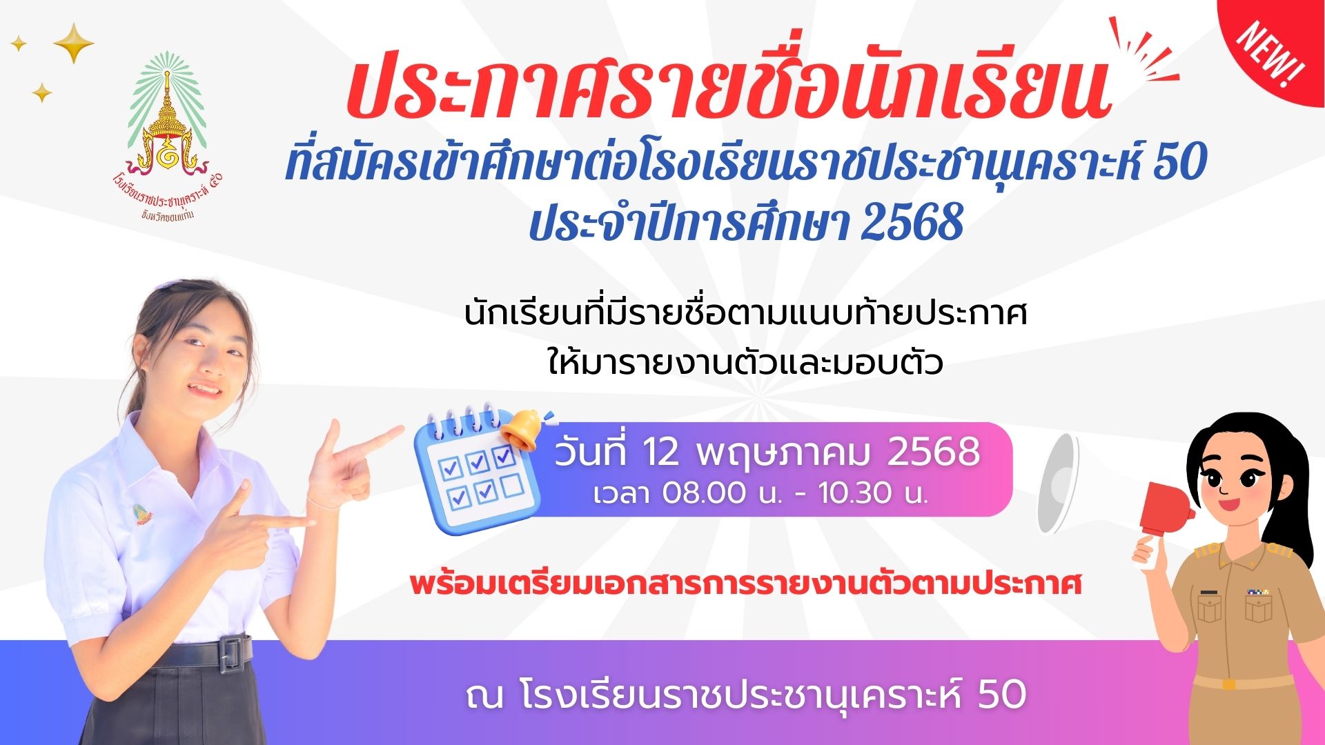 ประกาศรายชื่อนักเรียนที่สมัครเข้าศึกษาต่อโรงเรียนราชประชานุเคราะห์ 50 ประจำปีการศึกษา 2568